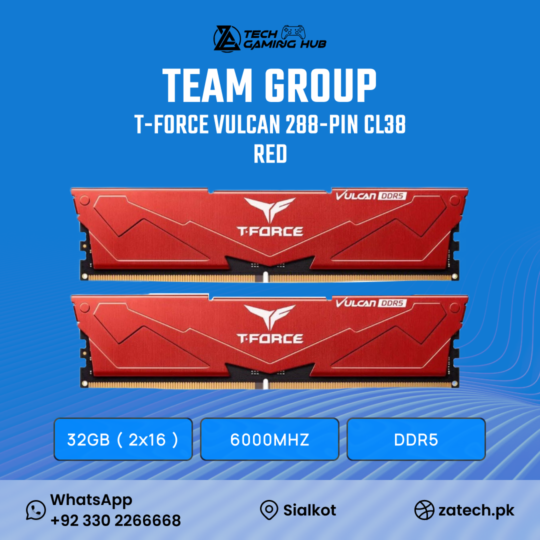 Be the first to review “Teamgroup T-Force Vulcan DDR5 32GB (2x16GB) 6000MHz CL38 Desktop Memory kit in red.”